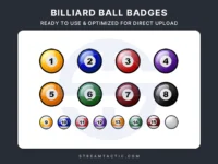 Introducing the Billiard Ball Badges, a stunning collection designed to enhance your Twitch channel with the timeless elegance of billiards.