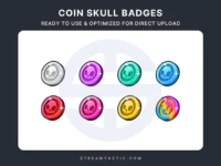 Upgrade your Twitch channel with the Coin Skull Badges, featuring a coin design with a skull in the center, adding a dangerous and edgy vibe to your stream.