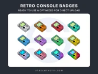 Introducing the Retro Game Console Badges, a must-have collection for gaming enthusiasts and retro gaming aficionados. These badges bring a nostalgic touch to your Twitch channel, celebrating the charm and nostalgia of vintage handheld game consoles.