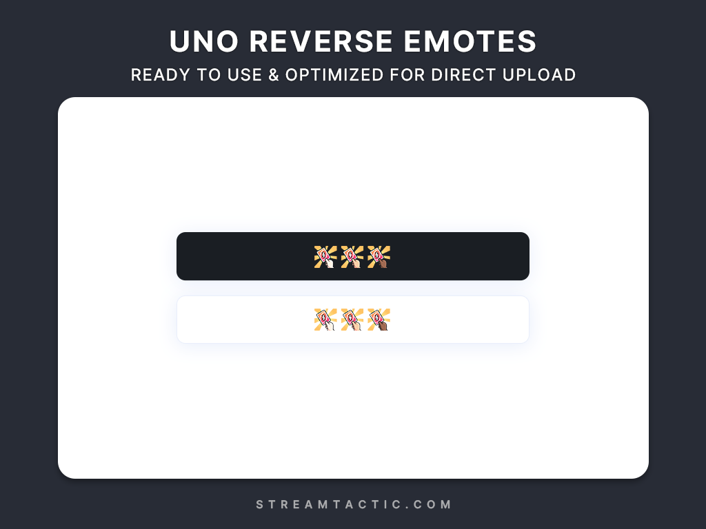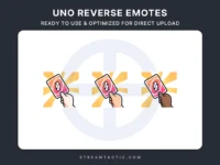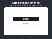 Upgrade your Twitch channel with the Uno Reverse Emotes, a playful and expressive emote set inspired by the iconic Uno Reverse card. Perfect for reacting, trolling, or turning the tables in style during your streams.