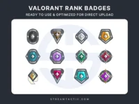 Introducing Valorant Ranks Badges, a must-have collection for Valorant enthusiasts and streamers. These badges are designed to showcase your competitive spirit and progression through Valorant’s ranking system, adding an exciting element to your Twitch channel.