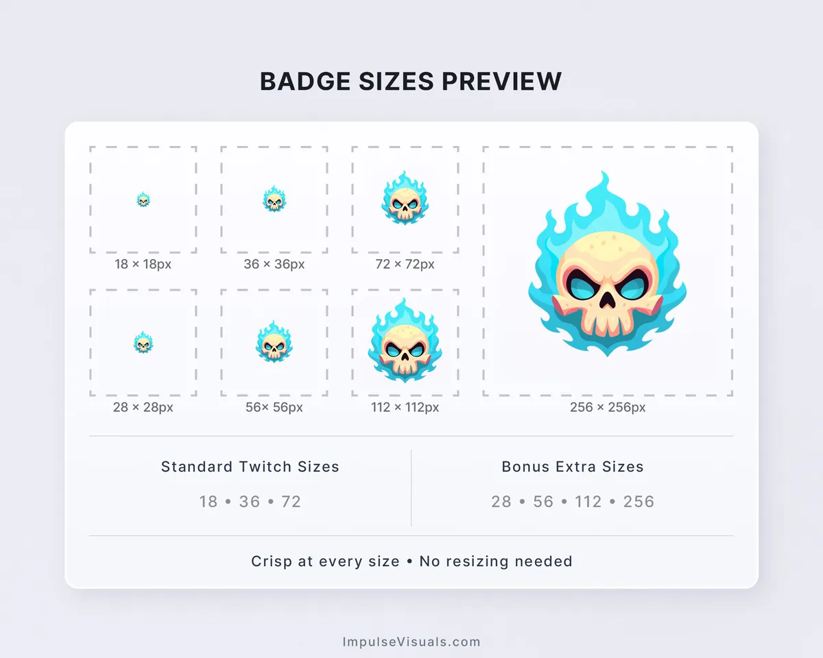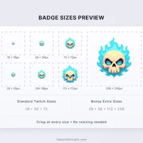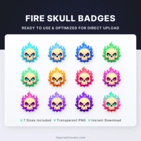 Light up your channel with Fire Skull Sub Badges, bold, fiery designs that showcase your subscribers’ power and loyalty as they level up through the ranks.