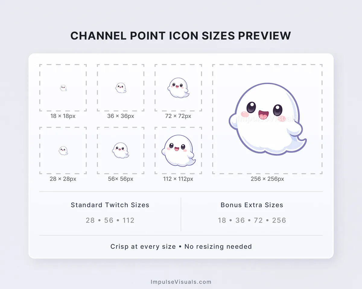 - Standard Twitch sizes: 28×28, 56×56, and 112×112 px