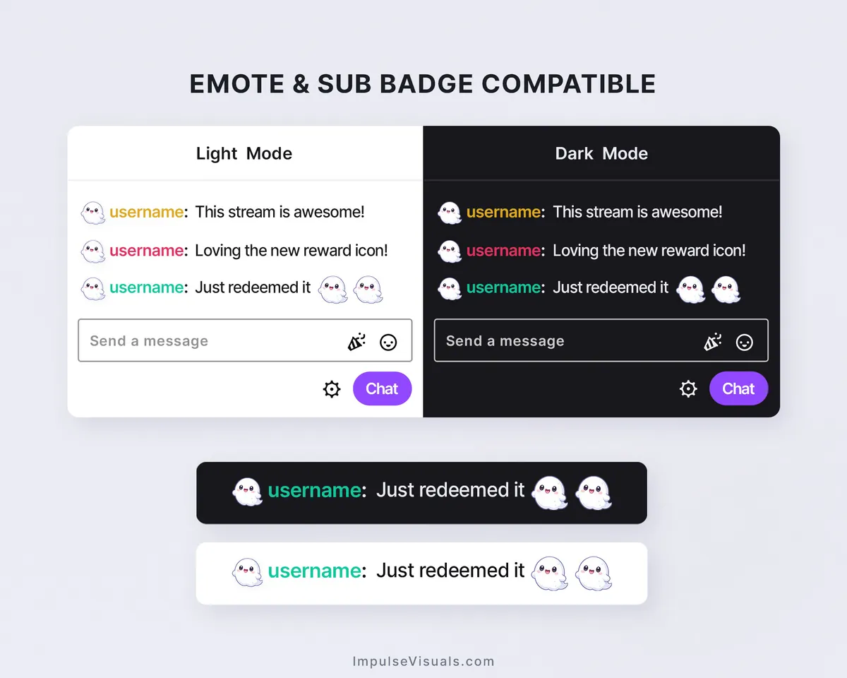 - Works with both light and dark Twitch themes