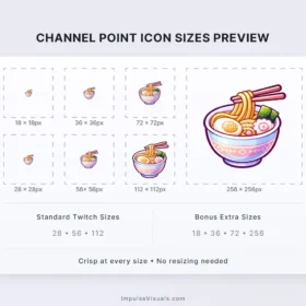 Bring tasty vibes to your stream with this cute ramen bowl icon, perfect for snack time, dinner breaks, and comfy chill stream vibes.