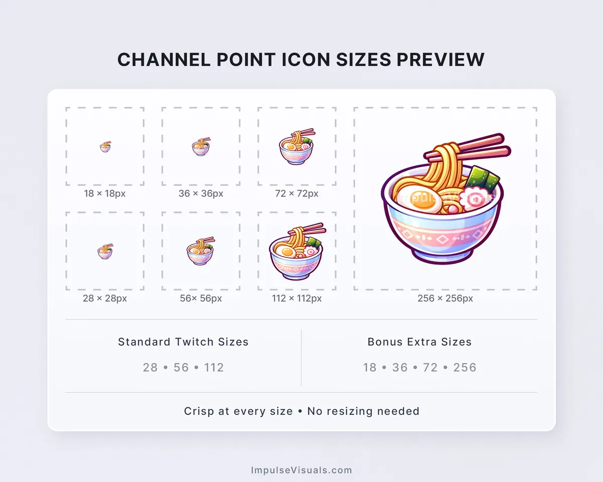 • Standard Twitch sizes: 28×28, 56×56, and 112×112 px