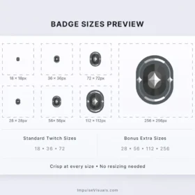 - Standard Twitch sizes: 18×18, 36×36, and 72×72 px