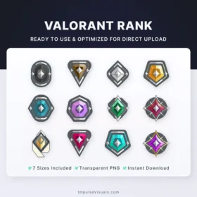 Introducing Valorant Ranks Badges, a must-have collection for Valorant enthusiasts and streamers. These badges are designed to showcase your competitive spirit and progression through Valorant’s ranking system, adding an exciting element to your Twitch channel.